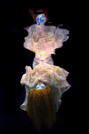 Onder het wateroppervlak werkt Dindi met reflecties en waterspiegelingen. Haar modellen bevinden zich onder of half boven water.