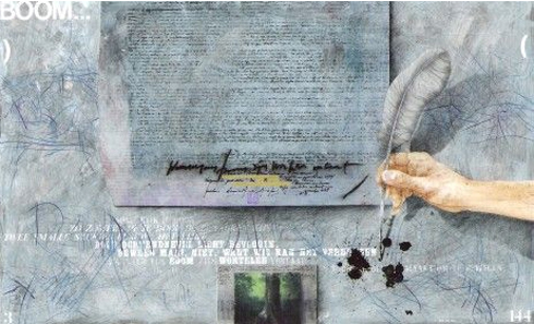 De kunstenaar schrijft en schildert, neuriet en bezweert. Hij benadert de werkelijkheid vanuit diverse schuilhoeken en verschalkt haar door zijn penseel of zijn pennetje achter te laten en het de kans te geven om vanuit het scheppen van een fictie zelf fictie te worden of vanuit het evoceren van een werkelijkheid de eigen werkelijkheid te verlaten en de dodelijke sprong van het gedachte worden te wagen.