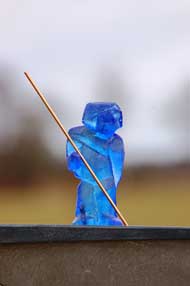 De stenen beelden worden direct uit de steen gehakt. Hierbij zie zij het als een uitdaging de specifieke eigenschappen van de diverse materialen zoveel mogelijk te benutten.